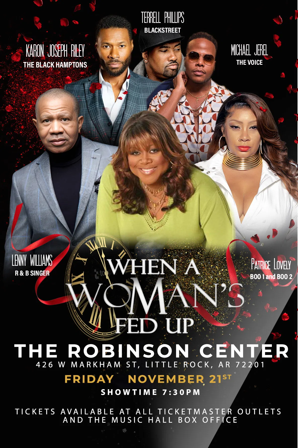 Get ready for an unforgettable night of music, drama, and entertainment as the stage play "When A Woman's Fed Up" comes to The Robinson Center in Little Rock on Friday, November 21st at 7:30PM.This po...